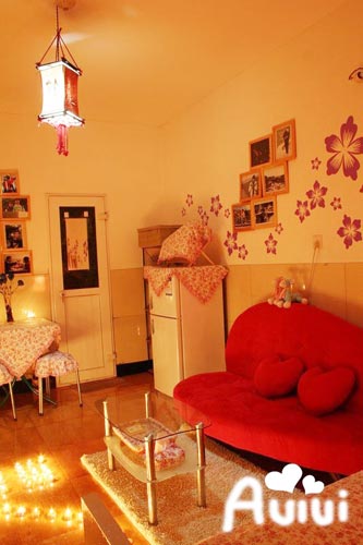 客廳,對這個紅色心型沙發(fā)一見鐘情,可舒展開當(dāng)床。辛唐米娜說:婚床一定得新娘自己買,吵架的時候,可以理直氣壯地對新郎說:滾,從我的婚床上滾下去。既然買不了床,就買個沙發(fā),吵架的時候可以分居睡。吼吼。
