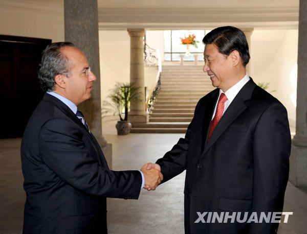 2月10日,中國國家副主席***在松林別墅與墨西哥總統(tǒng)卡爾德龍舉行會談。新華社記者 馬占成 攝