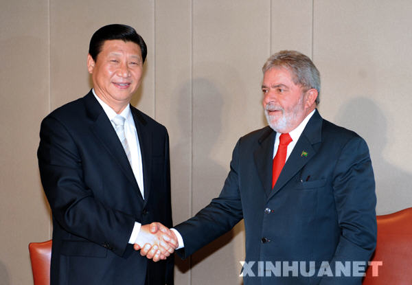 2月19日,中國國家副主席***在巴西利亞會見巴西總統(tǒng)盧拉。新華社記者馬占成攝