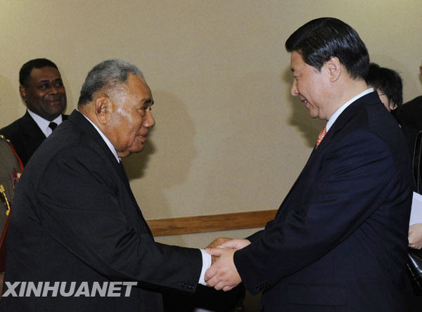 2月9日,中國國家副主席***在斐濟楠迪會見斐濟總統(tǒng)伊洛伊洛。新華社記者 黃敬文 攝