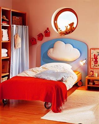 兒童房因為其特殊的功能,所以在布局方面除了要避免成人臥室所遇到的問題,如床下不可擺放橫梁之下,不可床頭靠窗等,另外兒童房亦要遠廚廁,以免受油煙、污穢之氣的干擾,更不應有穿堂風使孩子易于著涼感冒。兒童房需要空間,不可裝潢太復雜,家具也不宜太龐大,使房間無阻塞與局促之感。