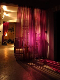 隔斷可以分為兩種:墻面,屏風(fēng),立柜等位置固定的是一種,這種隔斷在空間寬敞的房間里更適用,另一種形式更加豐富活潑:紗簾、幔帳、珠簾等等。它們的特點是幾乎不占空間,位置可以移動,透光透氣而不影響房間的通透感。這種隔而不斷的中式風(fēng)味更加優(yōu)雅綿長,尤其適合主人為女性的小戶型。