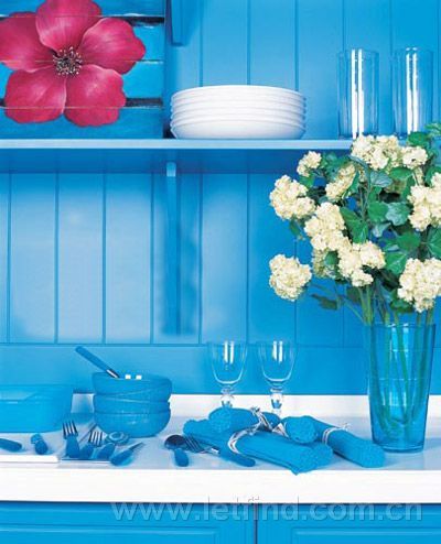 2、藍(lán)色的餐廚用具:營(yíng)造唯美的廚房風(fēng)格