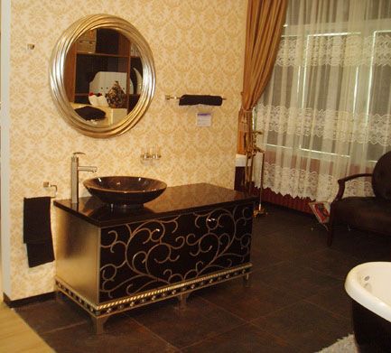 運(yùn)用浴室鏡、臺(tái)盆一體化的設(shè)計(jì)風(fēng)格,有著簡(jiǎn)潔精妙的外形,極盡繁瑣與華麗之能事。其臺(tái)盆在色彩運(yùn)用上打破了以往素白的常規(guī),配以手工描繪的優(yōu)雅花式及琺瑯般精美的龍頭,給人賞心悅目的感覺。以白色為底,映襯出圍繞在陶瓷件周圍的豪華金色,純手工貼片的設(shè)計(jì)既賦予臺(tái)盆絕佳的凹凸質(zhì)感,也讓人在平凡生活中追思宮廷生活的美輪美奐。