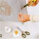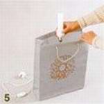 2、測(cè)量燈口底座的尺寸。在手提袋的底部正中畫一個(gè)圓,直徑小于底座直徑約4-5厘米。因底板較硬,需先用壁紙刀在圓的正中呈十字切開,再用剪刀剪下圓內(nèi)底板,這樣便于操作,剪出的圓洞邊緣光滑?!?FONT face=Verdana>