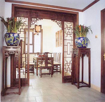 中國傳統(tǒng)的室內(nèi)設計融合了莊重與優(yōu)雅雙重氣質(zhì),中式風格是以宮廷建筑為代表的中國古典建筑的室內(nèi)裝飾設計藝術風格,氣勢恢弘、壯麗華貴、高空間、大進深、雕梁畫棟、金壁輝煌,造型講究對稱,色彩講究對比,裝飾材料以木材為主,圖案多龍、鳳、龜、獅等,精雕細琢、瑰麗奇巧。像窗欞、磚雕、門墩等這些傳統(tǒng)住宅中的建筑構件,經(jīng)常被用來做局部裝飾,以展現(xiàn)中國傳統(tǒng)藝術的永恒美感。以一些簡約的造型為基礎,添加了中式元素,如:甲骨文、中式窗欞、方格造型等,使整體空間感覺更加豐富。