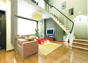 這是一套復(fù)式結(jié)構(gòu)的婚房,設(shè)計(jì)以簡(jiǎn)單舒適為主,由于季節(jié)的原因,忌用大面積的暖色調(diào),使人易引起煩躁情緒,局部可點(diǎn)綴一些紫色,如燈罩、地毯、桌布等,讓房?jī)?nèi)新婚氣氛得以蔓延,使人保持新婚那份好心情。室內(nèi)的選料及顏色搭配柔和,透過(guò)布置空間的編排,將原來(lái)的空間改組得更美觀(guān)、實(shí)用,不但為空間注入時(shí)尚的外觀(guān),也讓主人在回家后備感舒適。