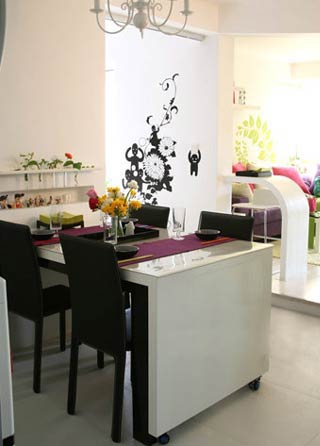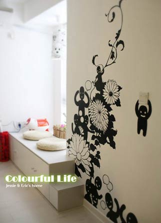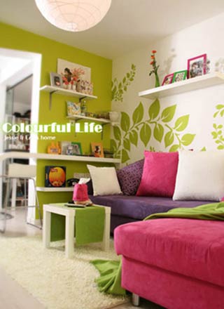 這一款樣板間最大的特色在于顏色,艷而不俗,媚而不妖。色調(diào)的選擇和巧妙的搭配,避免了大面積色塊帶來(lái)的視覺過(guò)度刺激,只給人一種青春活力之感。手繪在這所居室中大膽體現(xiàn),臥室,客廳各個(gè)各的手繪特色,置身于這樣的環(huán)境中,讓人想心情不好都難。