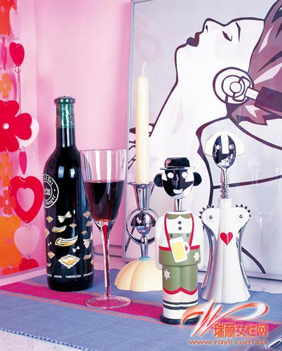 造型稚趣的男孩女孩開(kāi)瓶器使開(kāi)紅酒這一過(guò)程更加浪漫。侍女模樣的燭臺(tái),下部大裙擺的造型,加大了燭臺(tái)與餐桌的接觸面。開(kāi)瓶器 價(jià)格1070元(男孩) 810元(女孩) ALESSI 燭臺(tái) 價(jià)格 940元 ALESSI 裝飾畫(huà) 價(jià)格見(jiàn)店內(nèi) 生活概念
