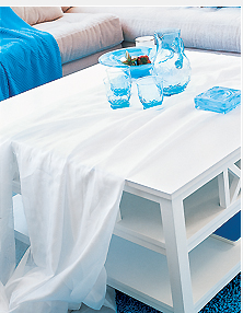 白色是炎熱的夏季里最平和、中性的色彩,茫茫的一片白色可能過于缺少樂趣,只要加入藍色做一個小小的改變,就可以制造出更清爽的效果,這里將告訴你一些搭配方法。