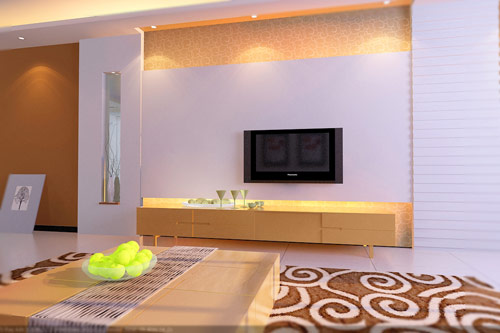 電視背景墻的燈光布置,多以主要飾面的局部照明來處理,還應(yīng)與該區(qū)域的頂面燈光協(xié)調(diào)考慮,燈殼尤其是燈泡都應(yīng)盡量隱蔽為妥。背景墻的燈光不像餐廳經(jīng)常需要明亮的光照,照度要求不高,且光線應(yīng)避免直射電視、音箱和人的臉部。收看電視時,應(yīng)有柔和的反射光作為基本的照明就可以了。