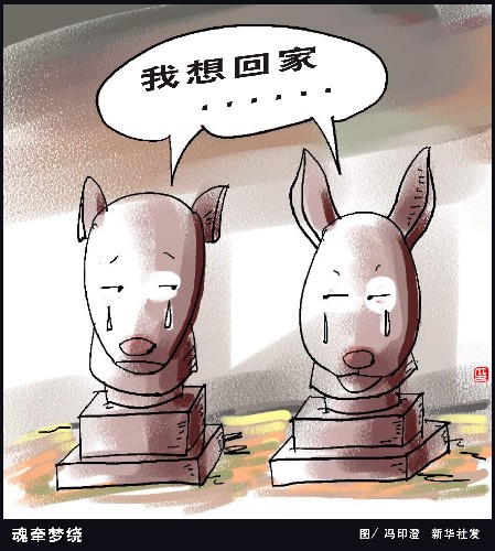 漫畫:魂?duì)繅衾@ 圓明園兔首鼠首銅像是英法聯(lián)軍在侵略中國戰(zhàn)爭中劫掠走,并流失海外多年的珍貴文物,中國對(duì)其擁有不可置疑的所有權(quán)。按照國際公約,這些文物理應(yīng)歸還中國。這已經(jīng)成了國內(nèi)外多數(shù)人的共識(shí),正義在我們一邊。 公道自在人心。隨著時(shí)代的進(jìn)步,歸還因戰(zhàn)爭劫掠的文物已經(jīng)成為人類文明的呼聲。我們流失在海外的國寶,也一定會(huì)回到祖國。對(duì)此,我們有耐心,更充滿信心。 新華社發(fā)
