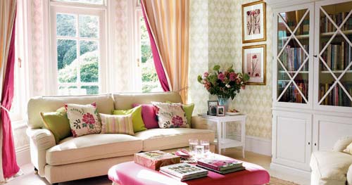 為平淡的空間加入一至兩種主題色彩,能迅速獲得驚艷的效果。有了顏色作為裝飾主線(xiàn),無(wú)需再加入過(guò)多的配飾。如果房間里的輔助色彩用于墻面等大面積裝飾,那么主題顏色的使用面積就要相對(duì)小些。比如這里的粉色沙發(fā)凳,還有雙面窗簾中隱約出現(xiàn)的粉色??傊黝}色不能超過(guò)整體色調(diào)的10%。用靠包、鮮花等與主題色相呼應(yīng),令空間造型更顯完整和專(zhuān)業(yè)。