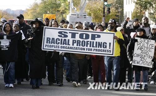 2月26日,中國國務(wù)院新聞辦公室發(fā)表《2008年美國的人權(quán)紀錄》,以回應(yīng)美國國務(wù)院25日發(fā)表的《2008年國別人權(quán)報告》對包括中國在內(nèi)的世界190多個國家和地區(qū)的人權(quán)狀況的指責(zé)。這是2007年11月16日,美國黑人民眾在首都華盛頓街頭參加反對種族歧視的**。在美國,種族歧視滲透到社會生活的各個方面。新華社發(fā)
