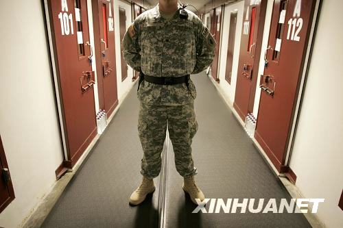 這是2007年9月4日,在古巴關(guān)塔那摩灣美國海軍基地監(jiān)獄(關(guān)塔那摩監(jiān)獄),一名美國士兵在牢房的走廊里警戒。在美國,囚犯比例再創(chuàng)新高,囚犯的基本權(quán)利得不到保障。新華社發(fā)