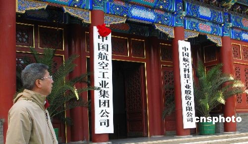2008年11月7日,位于北京北兵馬司大街的中國(guó)航空工業(yè)集團(tuán)公司正式掛牌。中國(guó)航空工業(yè)集團(tuán)公司由原中國(guó)航空工業(yè)第一集團(tuán)公司和中國(guó)航空工業(yè)第二集團(tuán)公司合并組建成,合并后的中航集團(tuán)公司,集中了中國(guó)航空制造業(yè)的核心力量。新的集團(tuán)公司設(shè)有防務(wù)、運(yùn)輸機(jī)、發(fā)動(dòng)機(jī)、直升機(jī)、機(jī)載設(shè)備與系統(tǒng)、通用飛機(jī)、航空研究、飛行試驗(yàn)、貿(mào)易物流、資產(chǎn)管理等十大產(chǎn)業(yè)板塊,下轄近200家子公司、有20多家上市公司,擁有總資產(chǎn)2900多億元人民幣,員工近40萬(wàn)。 中新社發(fā) 鄒憲 攝