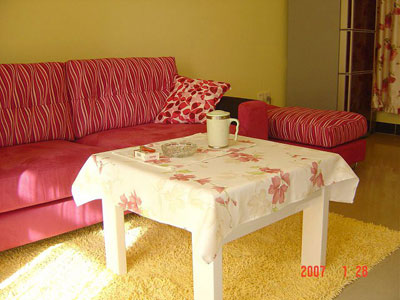 兩個月前,為了迎接爸媽的到來,專門做了沙發(fā)套,很喜歡,還想再做套藍色的呢,被LG說是敗家,作罷……