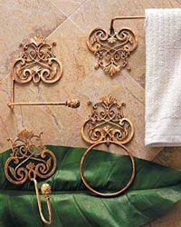 這一組鐵藝毛巾架,給傳統(tǒng)的直線條毛巾架帶來設(shè)計理念上的沖擊。由于鐵藝制品本身的造型,使單一的墻面變得很有生機,而且采用了圓環(huán)、彎鉤、橫檔等多種設(shè)計,可以滿足不同的喜好。當然,盡管有一層漂亮的色彩涂層,鐵藝在潮濕的環(huán)境下還是容易生銹,因此在考慮自家衛(wèi)生間的通風與除濕條件,或者采用其他金屬材料。