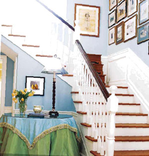 一組照片可以充實(shí)樓梯旁墻面的空白,注意要擺放緊湊,這樣容易產(chǎn)生整體感,每張照片的色彩和亮度要接近,照片也要與相框接近。