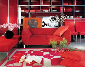 客廳是家中最大的休閑、活動空間,家人相聚、娛樂會客的重要場所,明亮舒適的光線有助于相處中氣氛的愉悅,休閑時視覺減輕眼睛的負(fù)擔(dān),在不同情形和時段亦可滿家居裝飾時,色彩是最易出效果、最能表達(dá)個性的一個元素,色彩運用恰當(dāng)、搭配合理的居室,比單純用貴重材料簡單堆砌更能令人賞心悅目,而紅色就是其中引人注目的一種。