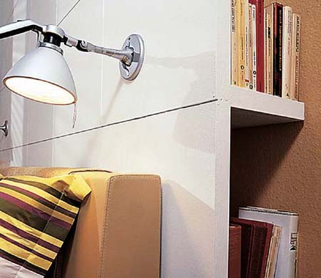 在床頭背后的白色背景墻側(cè)面,設(shè)計了層層隔板。對喜愛閱讀、藏書豐富的家庭來說,將這樣的空間都加以利用、擺上書籍,更滿足了最大限度的收納需求。無論有怎樣的喜好,將一種表露內(nèi)心喜好的收納方式呈現(xiàn)在居室的各個空間,是讓自己的家充滿個性色彩的關(guān)鍵。