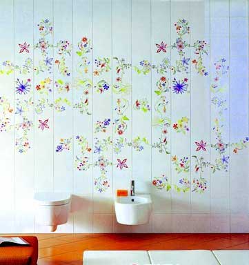 花草枝蔓洋溢著春天的色彩與芬芳,編織出一幅優(yōu)雅精細的藝術作品,仿佛賦予墻壁熾熱的生命,圖案組合多種多樣,環(huán)繞建筑構件和潔具鋪貼,會顯得更有趣。