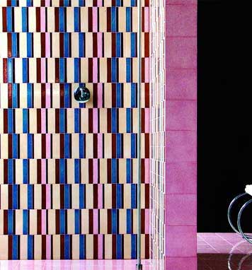 空間結構比較簡單的浴室,不妨以帶有特殊紋樣效果的瓷磚作為裝飾手段。運用條紋圖案的瓷磚強調出淋浴空間,不但帶來強烈的視覺效果,錯落的排列方式更營造出立體感;或者用條紋瓷磚來裝飾浴室鏡框、窗框,都是很好的創(chuàng)意。