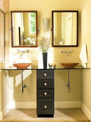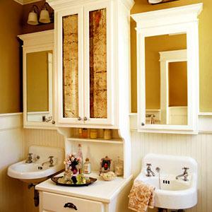 水盆之間的空間也要好好利用,在水盆之間安設一個獨立的或者是嵌入式的櫥柜。這個儲物柜額可以用來存放化妝品,還可以提供一個平臺放置發(fā)刷、口紅等。