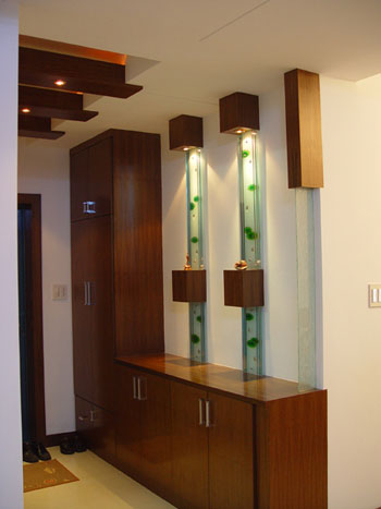 在家居風(fēng)水中,中國(guó)的傳統(tǒng)大宅院入門之處均設(shè)有大型玄關(guān),而現(xiàn)代都市的住宅普遍面積狹窄,若再設(shè)置傳統(tǒng)的大型玄關(guān),則明顯會(huì)感覺空間局促,難以騰挪。所以折衷的辦法是用玻璃屏風(fēng)來(lái)作間隔,這樣既可防止外氣從大門直沖入客廳,同時(shí)也可令狹窄的玄關(guān)不顯得太逼仄。