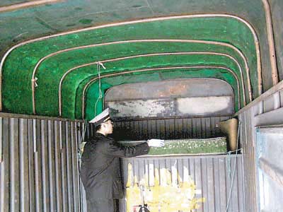 執(zhí)法人員進(jìn)一步檢查,驚奇地發(fā)現(xiàn)該貨車車廂改裝成了一個(gè)小鐵屋,車廂內(nèi)設(shè)有3張席夢思改裝成的6個(gè)臥鋪?zhàn)弧?nbsp;
