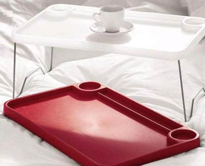 傳統(tǒng)的習(xí)慣是起床洗漱完畢后到餐廳吃早餐,可是有些戀床的人愿意用吃早餐來提神,仿佛吃完東西就有了起床的動力。于是有些床附加了早餐臺的功能組件,防滑的臺面,邊緣的護(hù)欄,都提供了周到的硬件條件,甚至還有一些特別的“安全餐具”更利于餐具的放穩(wěn),于是一些便利的早餐便登上了床空間,成為床文化的一部分
