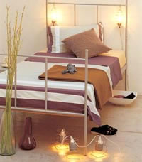 懸掛燈可以安放在床邊。燈亮?xí)r,映在墻上的放射線很漂亮。金屬燈的造型很可愛,照著床角的方式也很新穎。