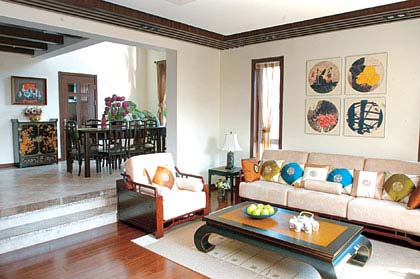 在國(guó)外漂久了反到越來(lái)越喜歡記憶中的雕梁畫(huà)棟、木作石刻。回國(guó)后,我就致力于把家打造成想象中的樣子??墒?,在看過(guò)幾套純中式裝修的樣板之后,我就打消了弄一個(gè)完全雕梁畫(huà)棟的家的念頭。太不實(shí)用了。而且那些古色古香的家具與現(xiàn)代化的電器完全不搭調(diào),真的很別扭。于是我聽(tīng)從了設(shè)計(jì)師的建議,先設(shè)計(jì)出一個(gè)舒適實(shí)用的現(xiàn)代風(fēng)格家,再在這基礎(chǔ)上添置一些具有符號(hào)性質(zhì)的中式家具。這樣問(wèn)題就解決了。