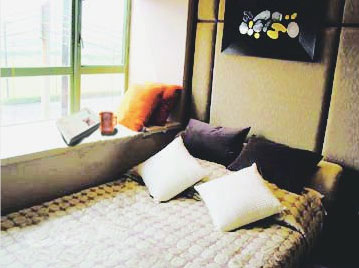 如果你家的飄窗夠大,有兩三米長、近一米寬,而你又恰好是一位喜愛浪漫、希望沐浴星光睡去又被陽光喚醒的人,不妨把你家的飄窗改造成一張小小的“單人床”。比如,可以保留原有的大理石臺面,在采光玻璃上掛上垂簾,再在飄窗與室內之間加一道窗簾。醒來時,整個窗戶造型是浪漫的宮廷式垂簾,輕輕拉開,就是飄在空中的浪漫小床了。而布滿繁星的夜晚,夢鄉(xiāng)飄在空中的小床上,真是期待與星空深情對話?。?/P>