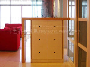 設(shè)玄關(guān)為了起裝飾作用,這里是客人從繁雜的外界進入這個家庭的最初感覺??梢哉f,玄關(guān)設(shè)計是設(shè)計師整體設(shè)計思想的濃縮,它在房間裝飾中起到畫龍點睛的作用,能使客人一進門就有眼睛一亮的感覺??剂康綄嵱眉邦A(yù)算,設(shè)計師建議用鞋柜代替玄關(guān)。