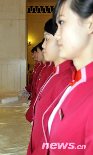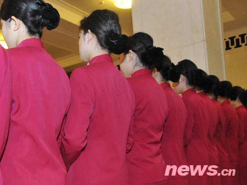 人民大會堂整齊劃一的服務(wù)人員(陳濤 攝)