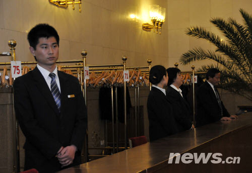 人民大會堂的服務(wù)人員(陳濤 攝)