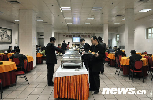 再來一張人民大會堂里供工作人員用餐的地方,“節(jié)約糧食,請勿浪費(fèi)”非常醒目?。悵?攝)