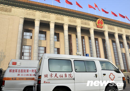 為兩會服務(wù)的救護(hù)車(陳濤 攝)