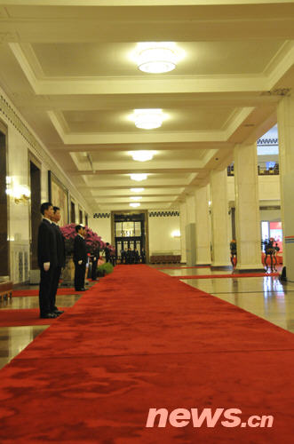 人民大會堂里的工作人員(陳濤 攝)