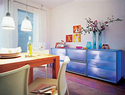 廚房中總是有些小角落。稍大的小角落,主婦們會(huì)擺一張小桌子,或幾把便于就餐時(shí)用的椅子,設(shè)計(jì)師建議選用折疊或長(zhǎng)度可調(diào)節(jié)的連柜餐桌,不用時(shí)將其折疊,而可疊加的椅子,則可存放于柜內(nèi)或桌底;稍小的角落安置推拉式高柜,這種儲(chǔ)藏能力很強(qiáng)的柜體大大減少了對(duì)空間的需求。