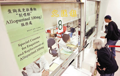 15間公立醫(yī)院昨日起為全港4萬名服用“別嘌醇”的病人換藥。圖片來源:文匯報