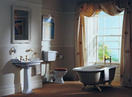 它的個性鮮明帶有濃郁的歐洲貴族氣息。潔具、瓷磚的設(shè)計、制作考究產(chǎn)品組合多樣。主要由中小規(guī)格的復(fù)古墻、地磚,古典風(fēng)格的洗面臺、坐便器、下身盆和與之風(fēng)格、造型、色彩配套的水龍頭所組成。復(fù)古磚的色澤多為黃、棕系列,磚面多表現(xiàn)為帶有肌理效果或啞光的質(zhì)感。淋浴裝置的造型像一個小型建筑物并帶有典雅古樸的裝潢。典型標(biāo)志:圓柱、梯級、墻壁雕飾、復(fù)古鏡、豪華的裝飾壁畫是常用到的元素。