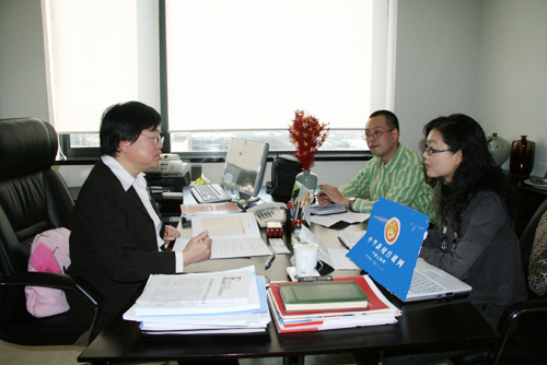 中國教育電視臺(tái)副臺(tái)長陳力(左一)接受中國記協(xié)網(wǎng)、新華網(wǎng)傳媒頻道專訪 劉春雷 攝