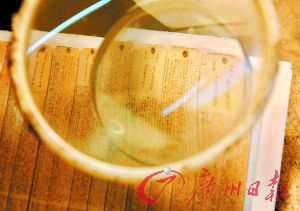 竹書字小,只能用放大鏡來看。