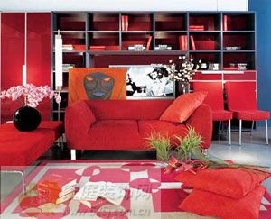 客廳是家中最大的休閑、活動空間,家人相聚、娛樂會客的重要場所,明亮舒適的光線有助于相處中氣氛的愉悅,休閑時視覺減輕眼睛的負擔,在不同情形和時段亦可滿家居裝飾時,色彩是最易出效果、最能表達個性的一個元素,色彩運用恰當、搭配合理的居室,比單純用貴重材料簡單堆砌更能令人賞心悅目,而紅色就是其中引人注目的一種。