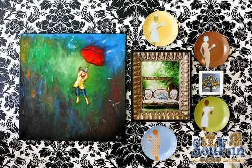 飾品——飾品很簡單,多彩的搭配讓墻面變得生動。女性的細膩與溫婉通過盤子上的四幅畫作呈現(xiàn)出來