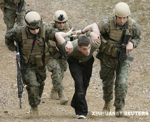 3月9日,在韓國首都首爾東南410公里的鎮(zhèn)海美軍基地,美國海軍陸戰(zhàn)隊(duì)太平洋反恐安全小組的成員模擬抓捕“入侵者”。代號(hào)為“關(guān)鍵決心”的韓國與美國聯(lián)合軍事演習(xí)9日正式開始,2.6萬名美軍官兵和5萬多名韓軍官兵參加這次為期12天的演習(xí)。