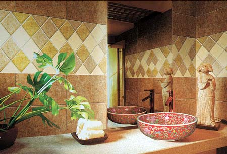古典手盆搭配仿古瓷磚毋庸贅言,而嘗試一下用描畫精美的手繪家具來與之結(jié)合,靈動的圖案和色彩與古陶的樣式相得益彰,絕對給你帶來驚喜。