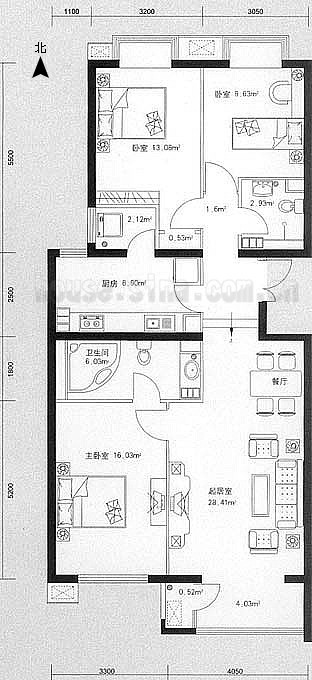 2.客廳方正,4.05米開間,便于布置和擺放家具。